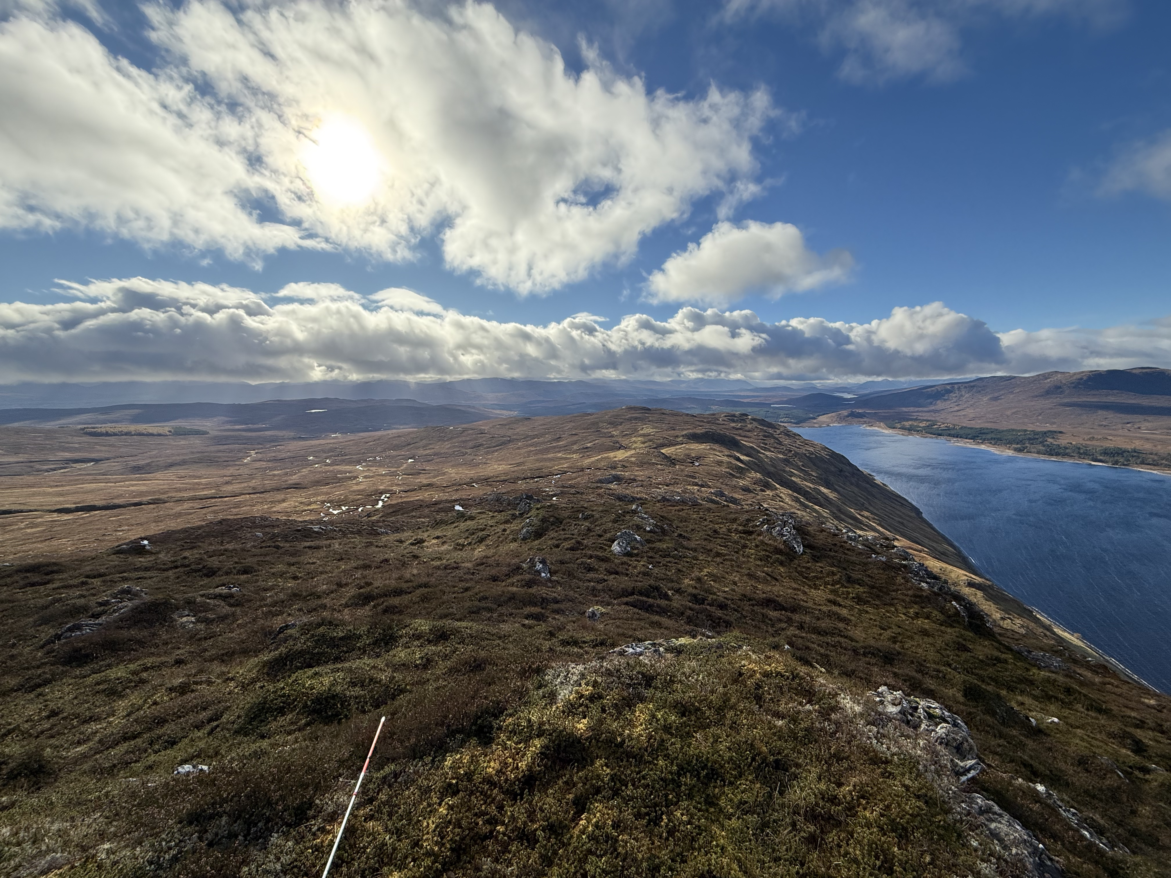 Lunch time is one of my favorite times. On Wednesday, I climbed up to a knoll overlooking the landscape, excited to see the view from higher ground. What I found there was stunning. Sitting with my lunch, looking down a steep slope down to the loch, I felt the cold wind coming off the water, a reminder of the raw intensity of these elements, the power of this place.